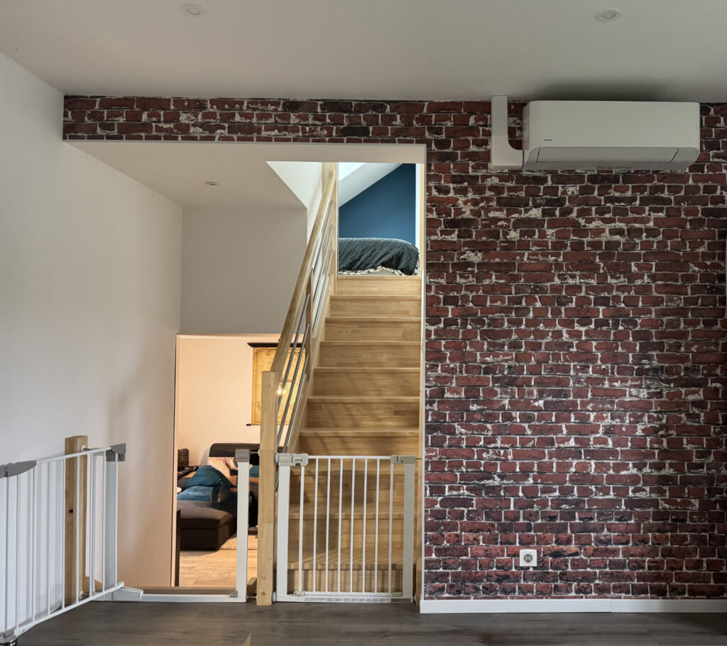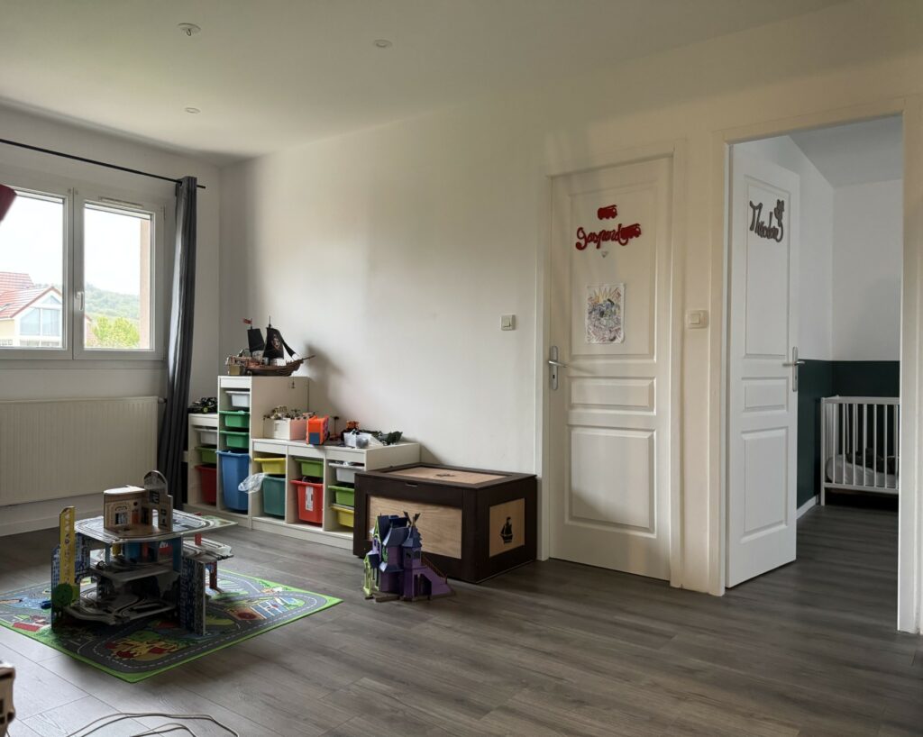 À l’étage, le nouveau cloisonnement offre désormais deux chambres spacieuses pour les enfants, accompagnées d’un grand espace de jeux sur le palier. Cet agencement favorise le confort, l’intimité et l’épanouissement, tout en multipliant les espaces de partage et de créativité.